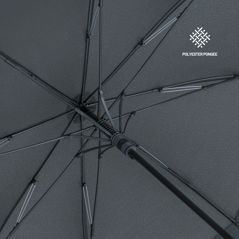 Een duurzame en stijlvolle paraplu met een luifel van 128 cm, gemaakt van 190 pongee-stof. Voorzien van een stevig frame van staal en glasvezel, een handvat van ABS-kunststof en een automatische openingsfunctie voor eenvoudig gebruik. REACH-gecertificeerd.