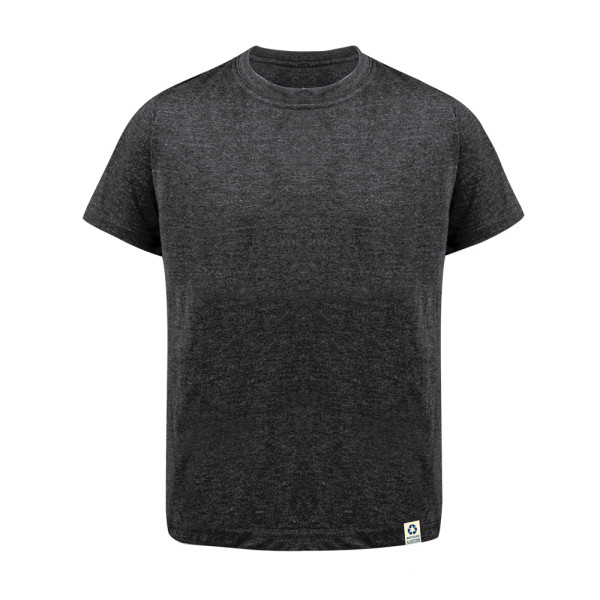Kinder T-shirt gemaakt van 60% gerecycled katoen in combinatie met RPET, single jersey stof, 150g/m2. Gemakkelijk verwijderbaar label. Verkrijgbaar in een breed scala aan kleuren, met gerecycled logo op het label en in de maten 4-5, 6-8, 10 -12. RPET-materiaal is gemaakt van gerecycled plastic, waardoor het hergebruik van plastic afval wordt bevorderd en de duurzaamheid van de planeet wordt bevorderd.