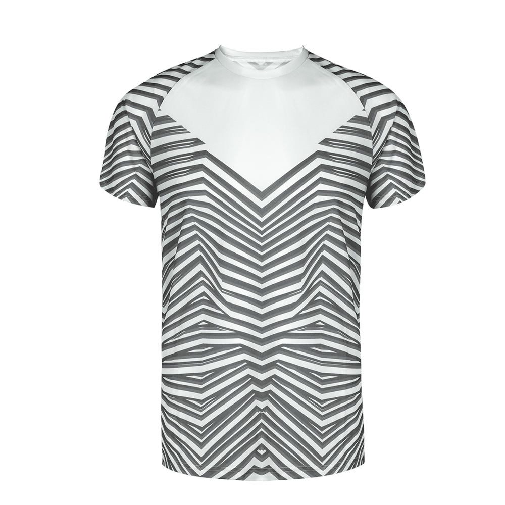 Technisch T-shirt voor volwassenen van 135 g/m2 polyester, ademend en voelt zacht aan. Met innovatieve gestreepte print en een blanco gebied op de borst voor branding. Met raglanmouwen en ronde hals. Verkrijgbaar in een breed scala aan kleuren en in de maten XS, S, M, L, XL, XXL.