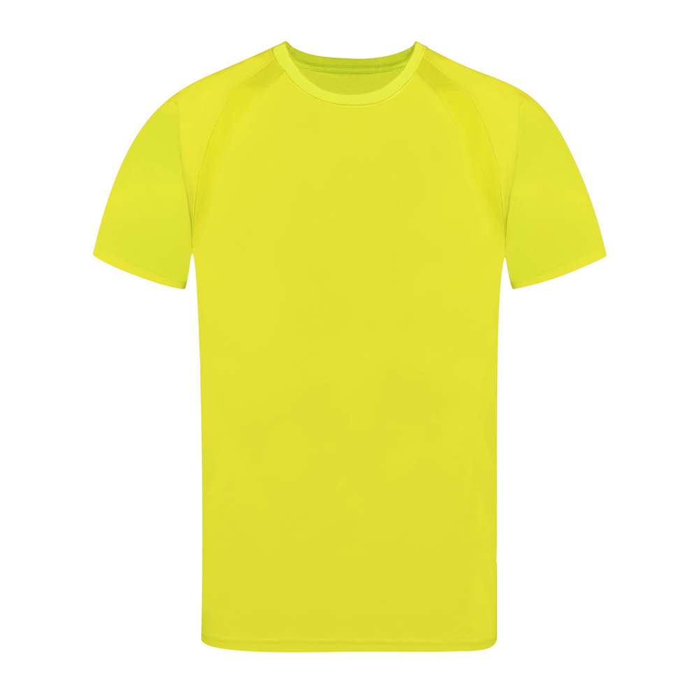 Technisch T-shirt voor volwassenen van 100% ademend polyester materiaal 135g/m2. Met raglanmouwen, ronde hals en banden aan de voorkant van ademende, micro-geperforeerde stof. Verkrijgbaar in de maten S, M, L, XL, XXL.