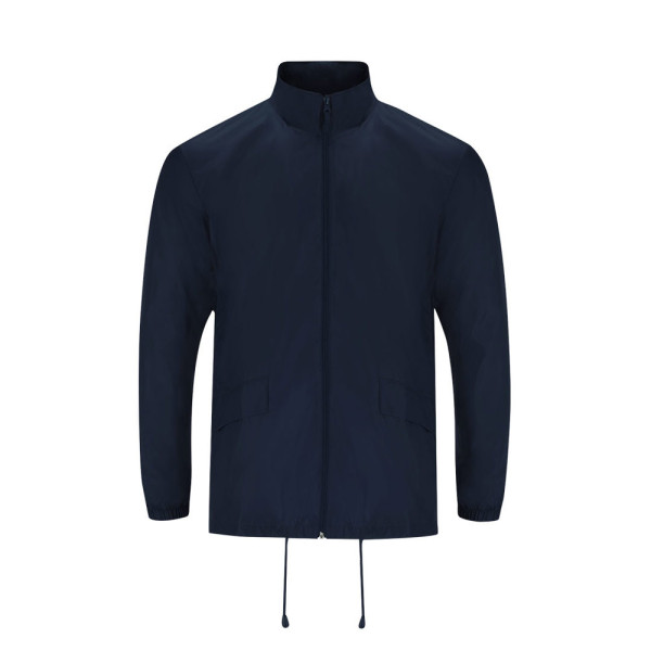 Unisex regenjas met hoge kraag en afneembare capuchon. De capuchon heeft verstelbare koorden voor een persoonlijke pasvorm en klittenband voor eenvoudig opvouwen en opbergen. De binnenkant is voorzien van een zilveren coating. Voorzien van een centrale rits met een trekker in dezelfde kleur. Inclusief: twee zijzakken met klep, elastische boorden voor een comfortabele pasvorm en een onderkant met verstelbare koorden voor een extra pasvorm. Heeft een elastische band in de binnenkant van een van de zakken, waardoor het opvouwen en opslaan van de regenjas wanneer deze niet in gebruik is, gemakkelijker wordt.