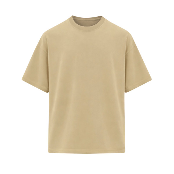 Over-sized kort mouw t-shirt gemaakt van 200 g/m² gladde katoen. Hals met 1x1 rib met elastaan en versterkte naden. Inclusief zijnaadsteken.