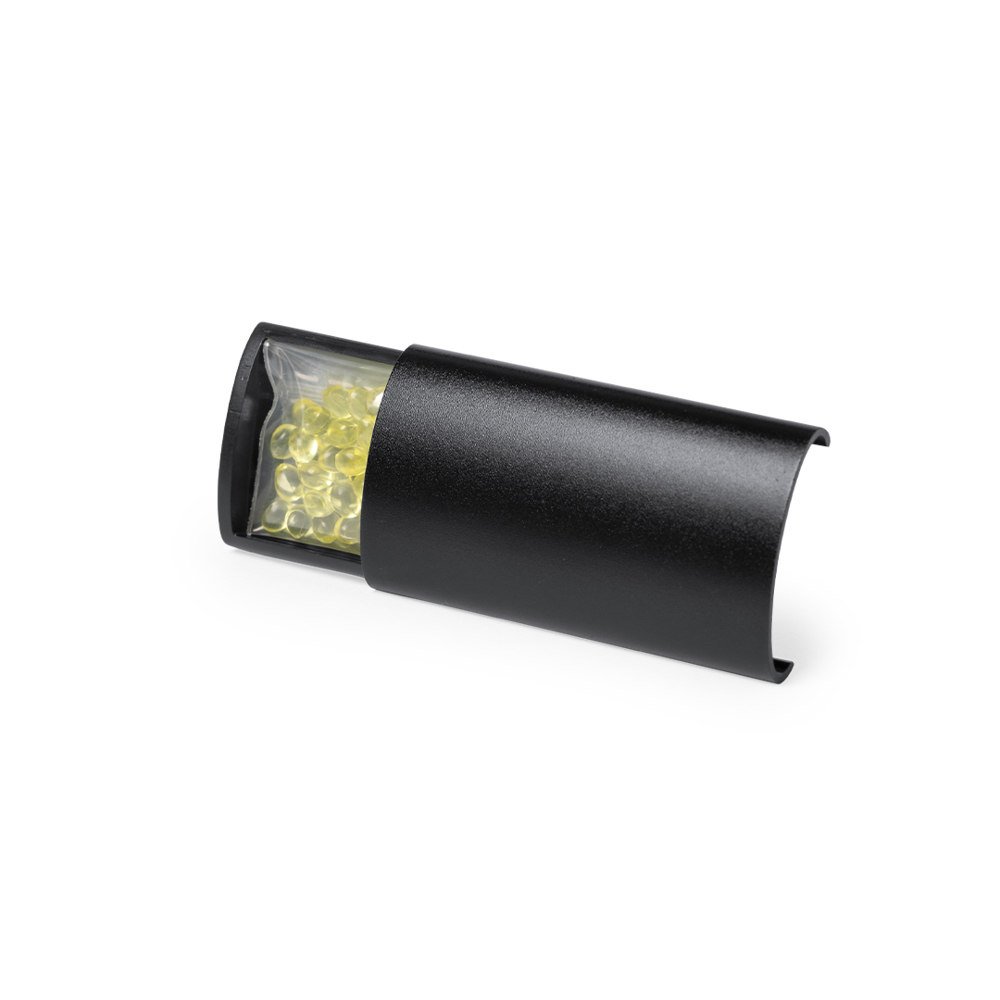 Dashboard-luchtverfrisser in een elegant ontwerp. Met schuiffront in gegranuleerd aluminium en een resistente achterkanthouder voor grill. Parfumballen met citroengeur en verkrijgbaar in zilveren en zwarte kleurafwerkingen.
