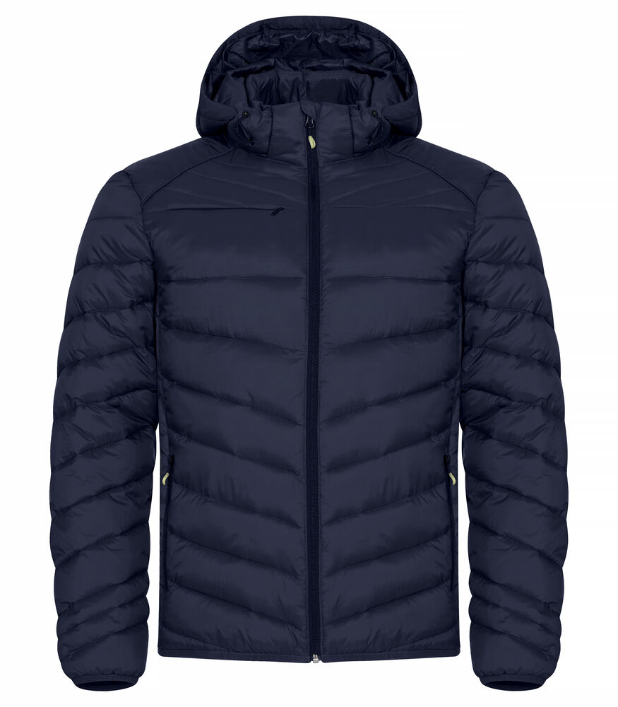 Een warm en toch lichtgewicht jack met donsachtige vulling gemaakt van 100% gerecycled polyamide. Voorzien van twee zijzakken en borstzak met rits en twee binnenzakken. De boord en mouwen zijn afgewerkt met een elastische band. Het jack heeft een afneembare capuchon. Afgewerkt met doorvoer voor koptelefoon, ophanglusje in de nek en zipper puller in een contrasterende kleur.
