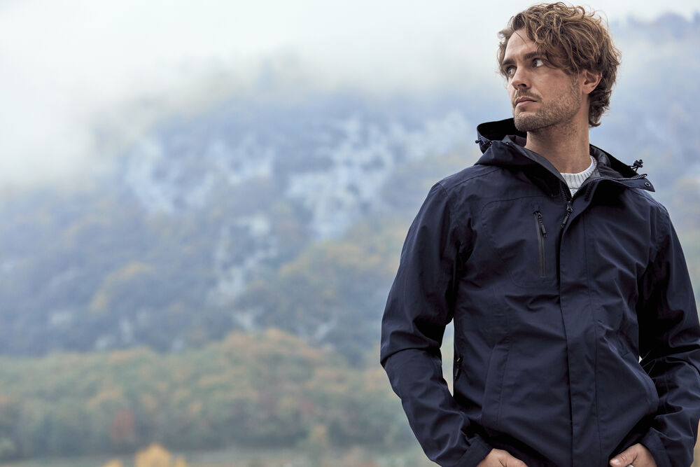Moderne, functionele shell jas met diverse handige details. De jas is zorgvuldig afgewerkt met getapete naden, een trekkoord in de capuchon en in de boord, klittenband onderaan de mouwen en ventilerende panelen onder de armen. De jas is gemakkelijk te veredelen dankzij de drukkersrits aan de binnenzijde. Verder is de jas voorzien van twee borstzakken met rits, een zak aan de binnenzijde met rits en waterproof ritsen op de voorzijde en bij de steekzakken.