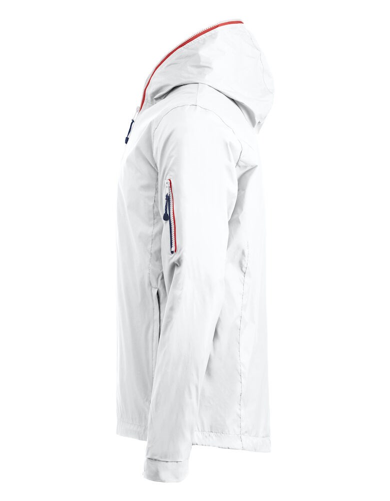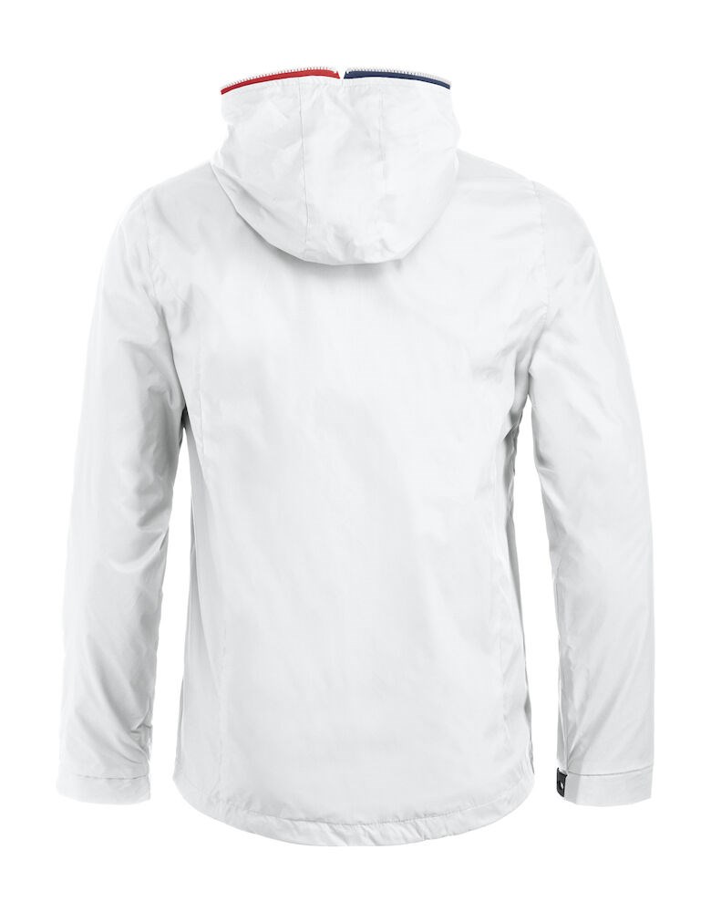 Opvallende, lichtgewicht jas met rits die tot en met de capuchon dicht kan. De jas is uitgerust met opvallende contrasterende strepen die langs de rits lopen voor een unieke, opvallende uitstraling. De jas is gemaakt van hoogwaardig ripstop polyester met PU coating ter bescherming bij regenachtig weer. De jas is gemakkelijk te veredelen dankzij de drukkersrits aan de binnenzijde.