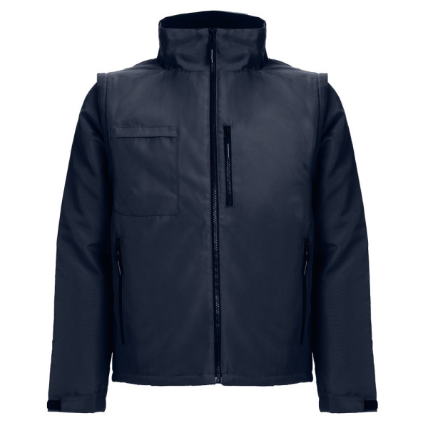 Unisex gewatteerd jack (buitenkant: 170 g/m² 100% polyester oxford met acrylcoating, vulling: 75 g/m² 100% polyester, binnenkant: 65 g/m² 100% polyester taffeta). Omvormbaar tot vest, met afritsbare mouwen. Bevat een kraag gevoerd met polar mesh en drie zakken met rits. Toegang met rits aan de achterkant voor eenvoudige aanpassing. Maten: S, M, L, XL, XXL, 3XL
