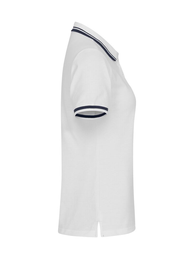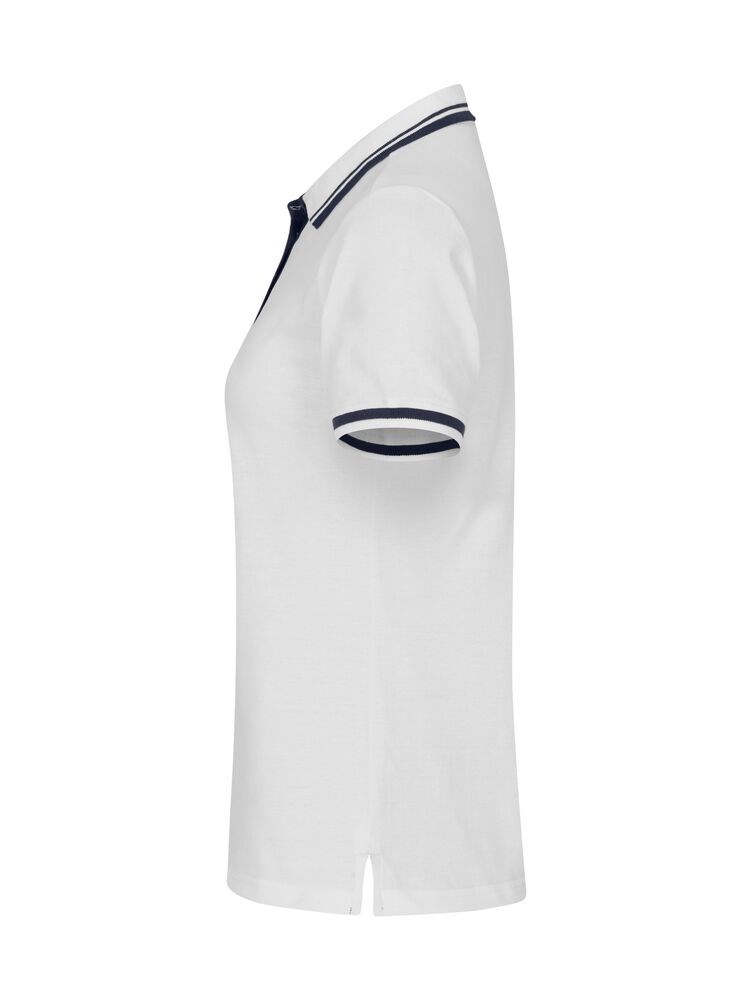 Moderne polo met contrasterende details in de kraag en bij de mouwen. De polo is hoogwaardig afgewerkt met zijsplitjes, ton sur ton knopen, verstevigde necktape en een gemakkelijk te verwijderen label voor rebranding. Goed te combineren met de Conrad en Amarillo polo’s.