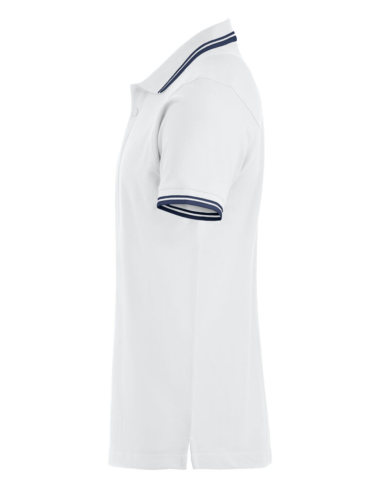 Moderne polo piqué met opvallende contrasterende details in de kraag en bij de mouwen. De polo is...meer