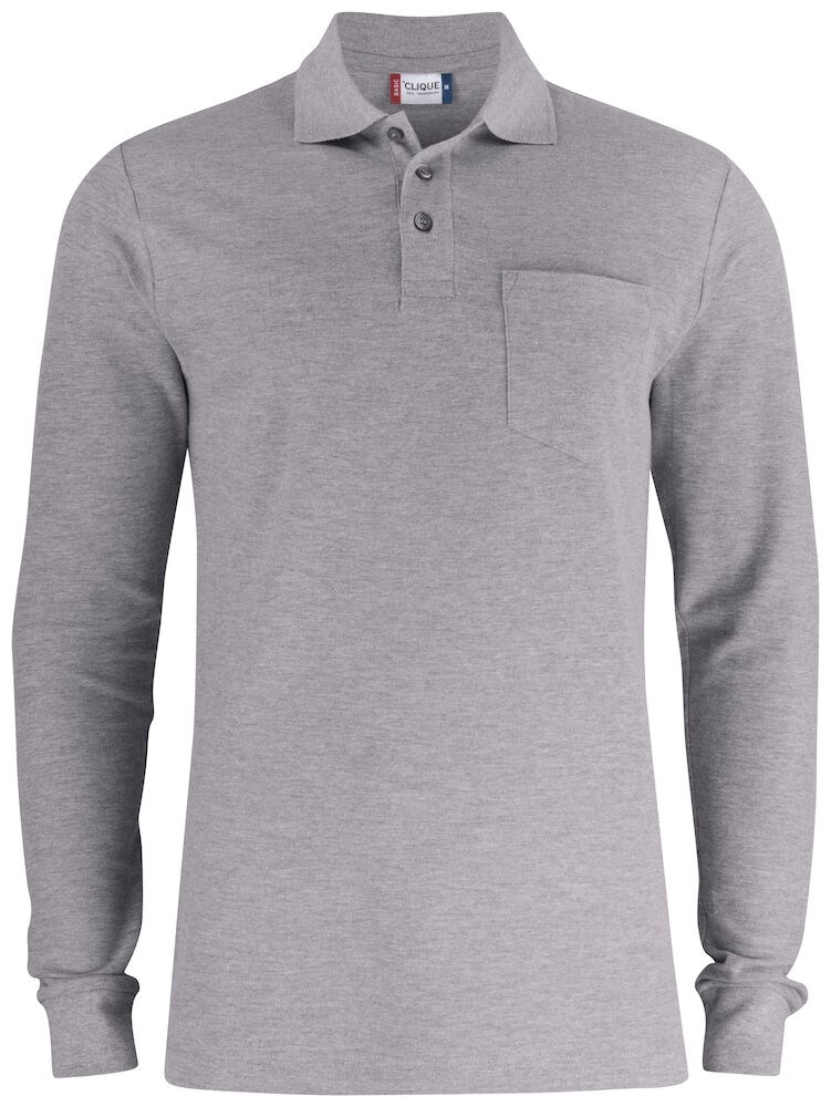 Clique - Basic Polo Pocket L/S Grijs-melange 4XL