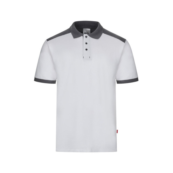 Tweekleurig stretch piqué poloshirt (200g/m²) met korte mouwen, in polyester (96%) en elastaan (4%). Met knoopsluiting. Knopen in contrasterende kleur, geribde kraag, sluiting en geribde boorden op de mouwen. Maat: XS, S, M, L, XL, 2XL, 3XL