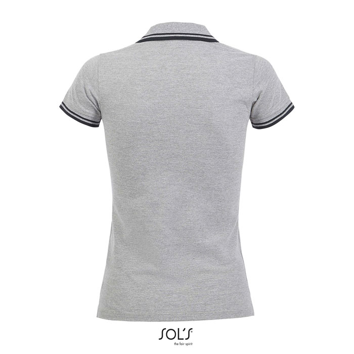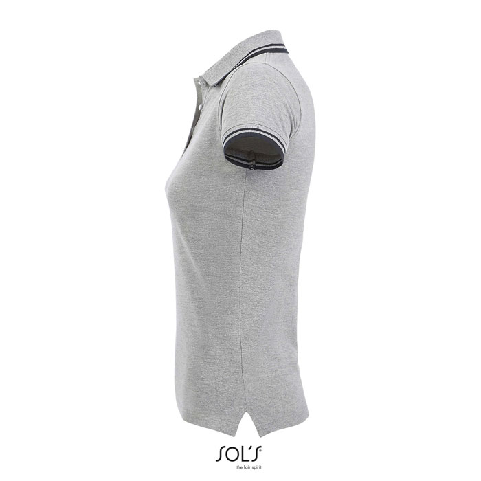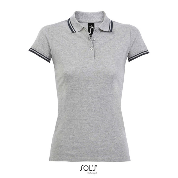 SOL'S PASADENA WOMEN, POLOSHIRT VOOR DAMES, 100% ringspun katoen PIQUÉ 200, ribboord 1x1 aan kraag en manchetten, verstevigingsband in de nek, korte mouwen, contrasterende strepen op kraag en manchetten, ton sur ton knoopsluiting met 3 knopen, getailleerde pasvorm, geknipt en genaaid, zijsplitten, reserveknoop aan de binnennaad. Raadpleeg de maattabel in de productdocumentatie voor informatie over de pasvorm.
