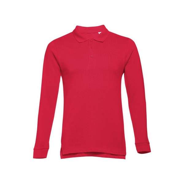 Herenpolo met lange mouwen van 100% gekaard piqué katoen (210 g/m²) (kleur 183: 85% katoen/15% viscose). Regular-fit polo met ribkraag en manchet knopen, de kraag is verstevigd met piquébreisel. Bevat een verstevigde kraag met 3 bijpassende knopen (extra knoop in de binnenzoom). Gesneden en genaaid stuk met openingen aan de onderkant. Met een verwijderbaar etiket. Maten: S, M, L, XL, XXL