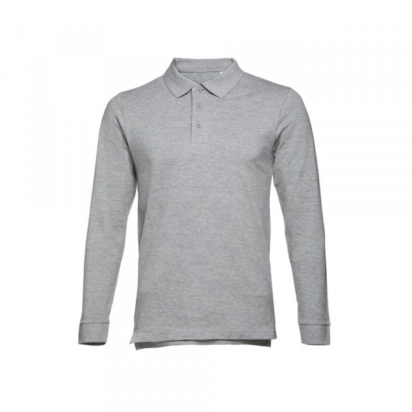 Herenpolo met lange mouwen van 100% gekaard piqué katoen (210 g/m²) (kleur 183: 85% katoen/15% viscose). Regular-fit polo met ribkraag en manchet knopen, de kraag is verstevigd met piquébreisel. Bevat een verstevigde kraag met 3 bijpassende knopen (extra knoop in de binnenzoom). Gesneden en genaaid stuk met openingen aan de onderkant. Met een verwijderbaar etiket. Maten: S, M, L, XL, XXL