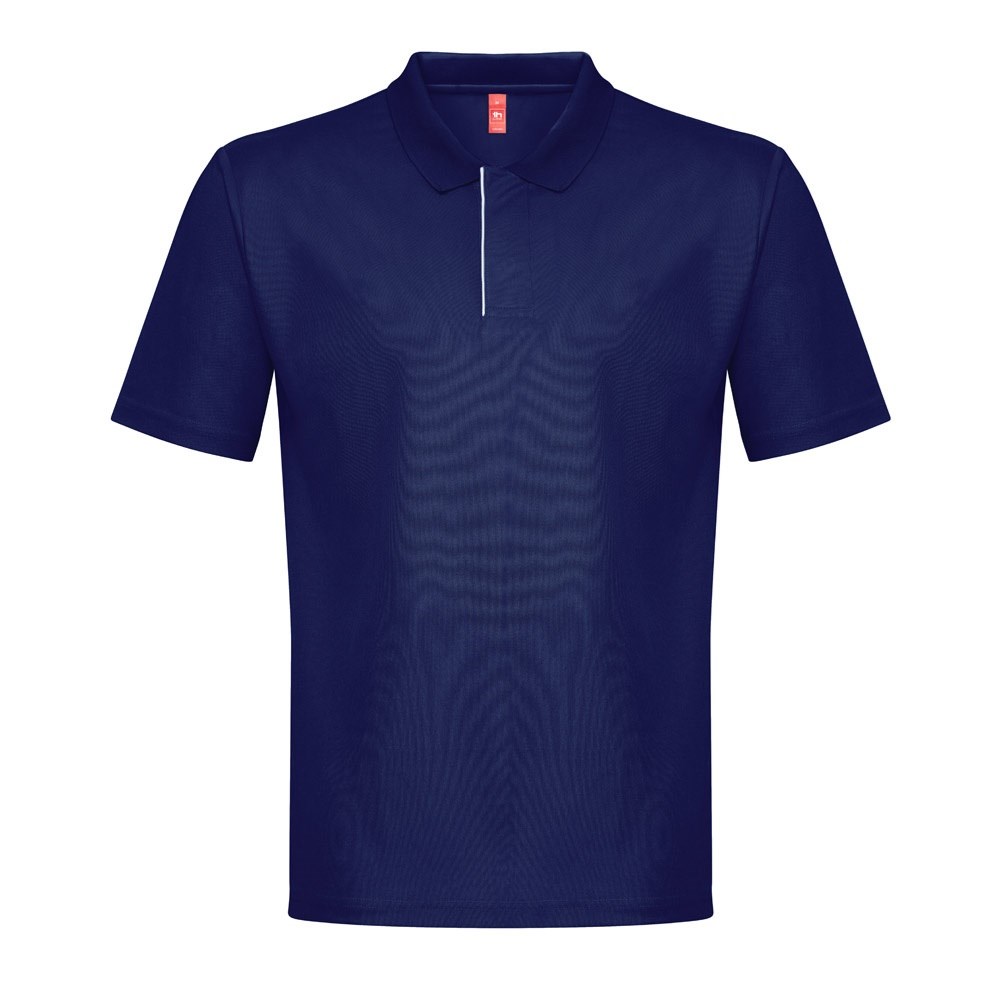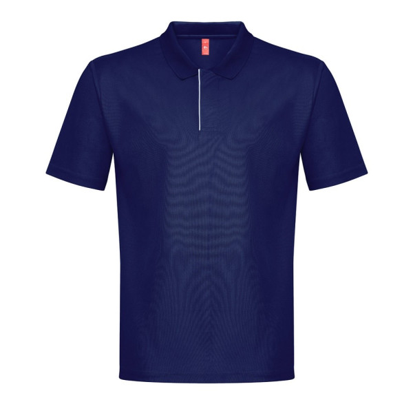 Technisch herenpoloshirt met korte mouwen in 100% gerecycled polyester piqué breisel (180 g/m²). Dit poloshirt heeft een 1x1 ribkraag en dubbele stiksels aan de mouwen en onderkant. Verstevigde sluiting met 3 gekleurde knopen afgewerkt in wit (behalve kleur 106 die is afgezet met zwart). Stuk gesneden en genaaid met kleine zijopeningen aan de onderkant van de polo en afgewerkt in wit (behalve voor kleur 106 die wordt gecontrasteerd met zwart). Maten: S, M, L, XL, XXL, 3XL