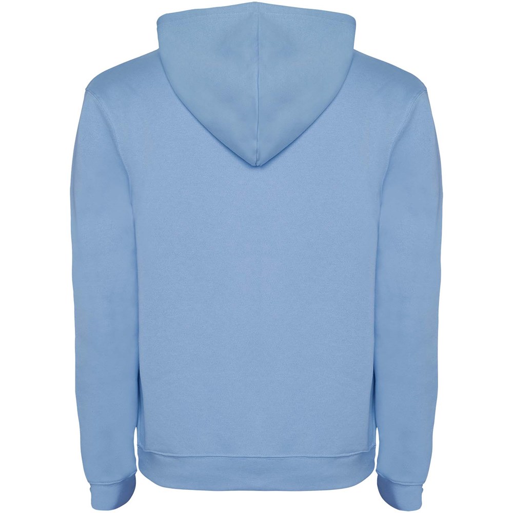 Tweekleurige hoodie met dubbele stof. Versterkte bedekte naden in de kraag en kangoeroezak. 1x1 elastaan rib in manchetten en tailleband. Verwijderbaar etiket. Het model is 120 cm en draagt maat 5/6.