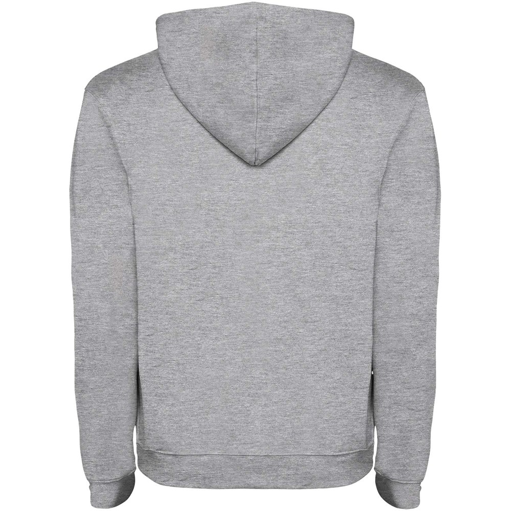 Tweekleurige hoodie met dubbele stof. Versterkte bedekte naden in de kraag en kangoeroezak. 1x1 elastaan rib in manchetten en tailleband. Verwijderbaar etiket. Het model is 120 cm en draagt maat 5/6.