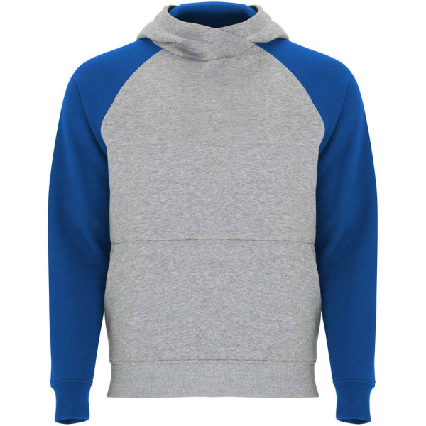 Tweekleurige unisex hoodie. Capuchon met gekruiste hals en metalen oogjes. Contrasterende binnenkant van de capuchon, trekkoord en raglanmouwen. Kangoeroezak. Manchetten en zoom van 1x1 ribgebreid elastaan. Verwijderbaar label.