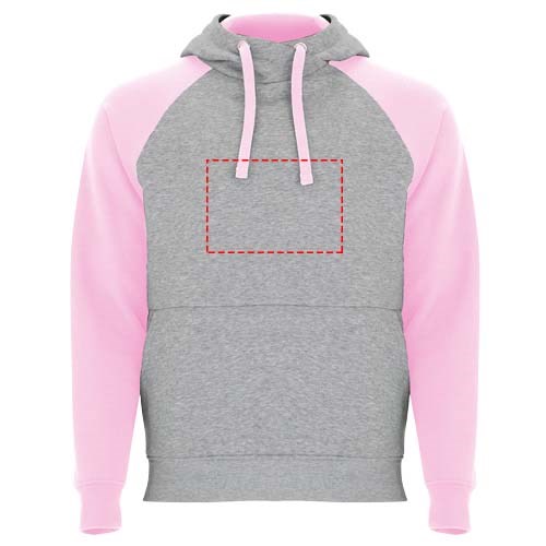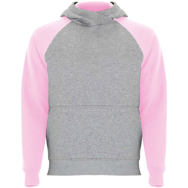 Tweekleurige unisex hoodie. Capuchon met gekruiste hals en metalen oogjes. Contrasterende binnenkant van de capuchon, trekkoord en raglanmouwen. Kangoeroezak. Manchetten en zoom van 1x1 ribgebreid elastaan. Verwijderbaar label.