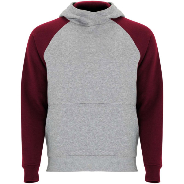 Tweekleurige unisex hoodie. Capuchon met gekruiste hals en metalen oogjes. Contrasterende binnenkant van de capuchon, trekkoord en raglanmouwen. Kangoeroezak. Manchetten en zoom van 1x1 ribgebreid elastaan. Verwijderbaar label.
