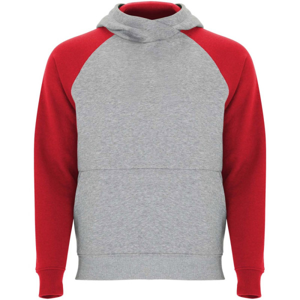 Tweekleurige unisex hoodie. Capuchon met gekruiste hals en metalen oogjes. Contrasterende binnenkant van de capuchon, trekkoord en raglanmouwen. Kangoeroezak. Manchetten en zoom van 1x1 ribgebreid elastaan. Verwijderbaar label.