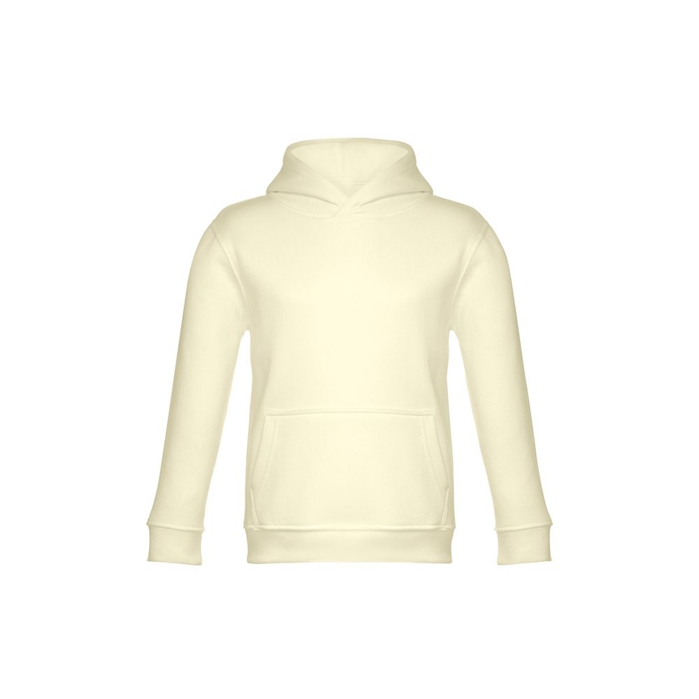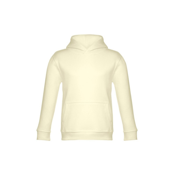 Sweatshirt met capuchon voor kinderen (unisex). Van 50% katoen en 50% polyester (320 g/m²) met gekaarde binnenkant. Met jersey gevoerde capuchon die voldoet aan de veiligheidsnormen van de Europese Unie. Sweatshirt met buidelzak en 1x1 rib mouwen en tailleband. Maten: 2, 4, 6, 8, 10, 12