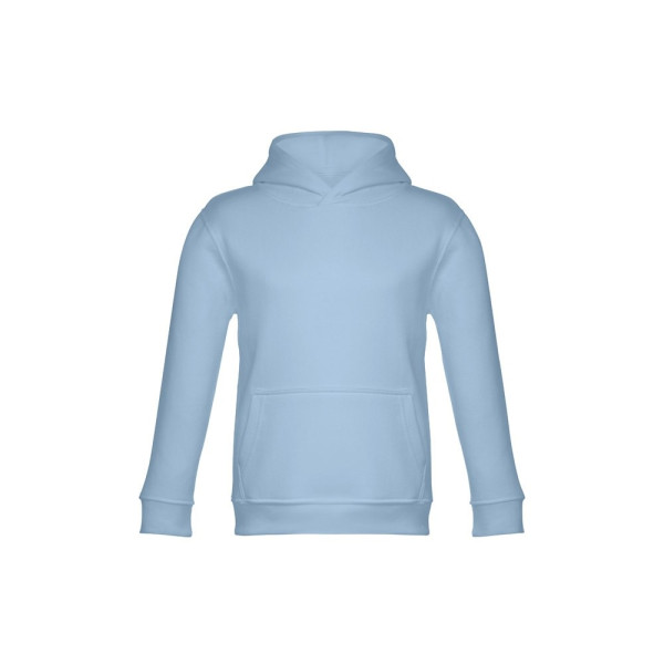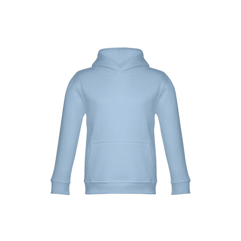 Sweatshirt met capuchon voor kinderen (unisex). Van 50% katoen en 50% polyester (320 g/m²) met gekaarde binnenkant. Met jersey gevoerde capuchon die voldoet aan de veiligheidsnormen van de Europese Unie. Sweatshirt met buidelzak en 1x1 rib mouwen en tailleband. Maten: 2, 4, 6, 8, 10, 12