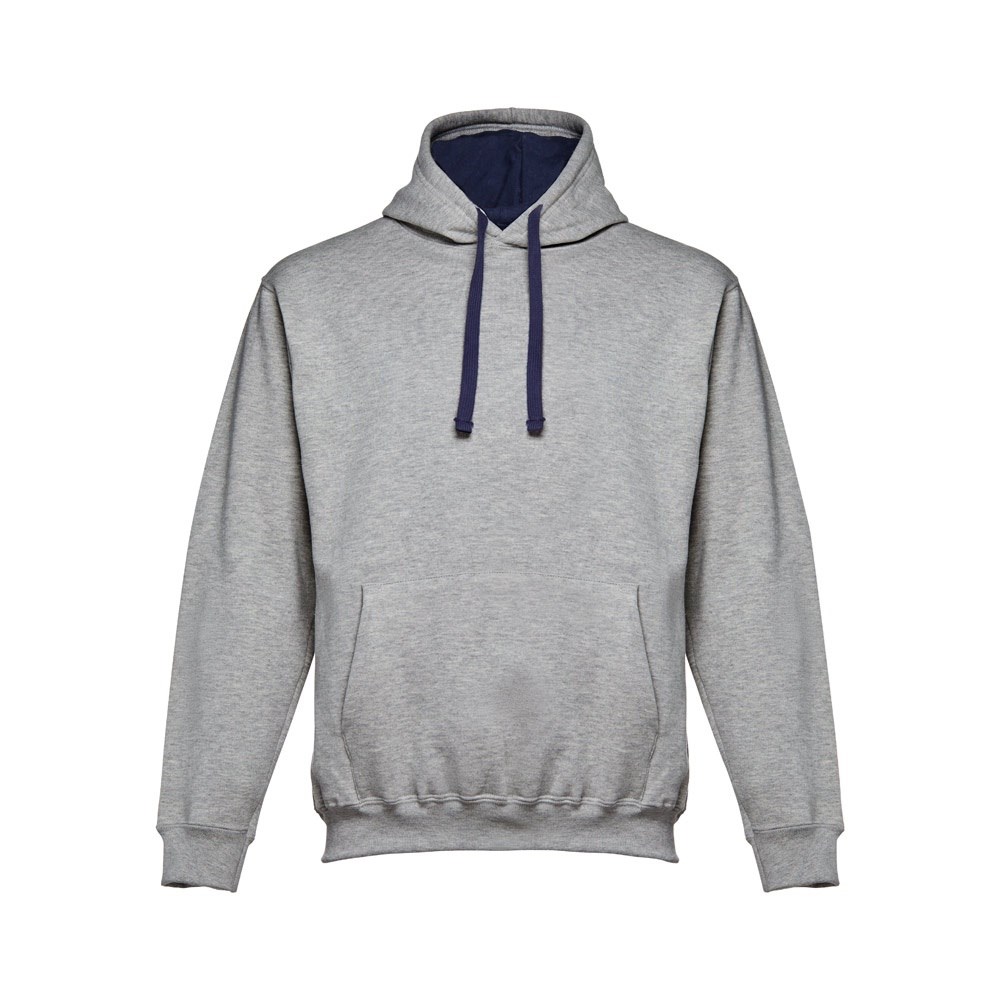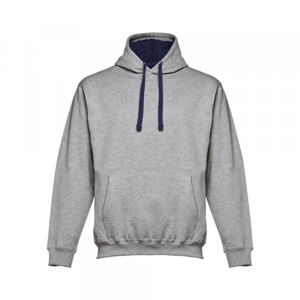 Sweatshirt (unisex) 50% katoen en 50% polyester (320 g/m²) met gekaarde binnenkant. Bevat 1x1 rib mouwen en tailleband, buidelzak en capuchon met contrasterende kleurstrengen. Maten: S, M, L, XL, XXL