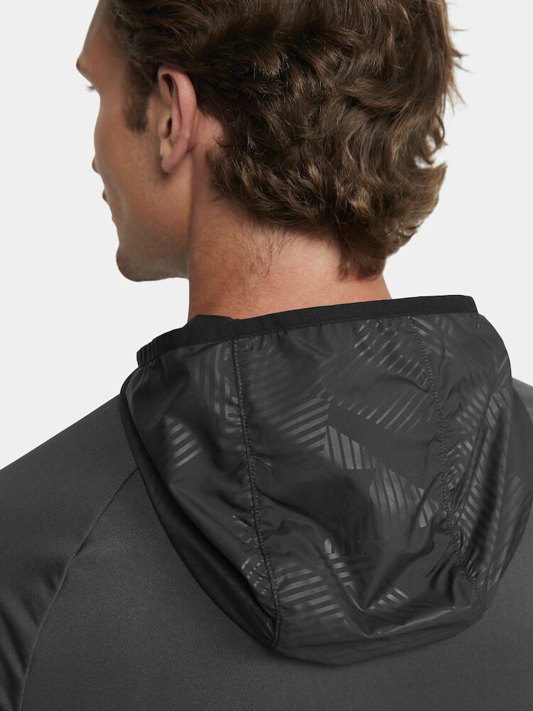 EXTEND Full Zip is a highly functional training garment designed for maximum performance at the highest level of sports. This premium jersey is made of thin, very elastic and recycled polyester fabric offering exceptional moisture transport and superb freedom of movement. In addition, the full zip jersey features side panels with structured fabric surface, two zip side pockets, woven hood, and loop to securely fasten the hood when not in use. Tight fit.