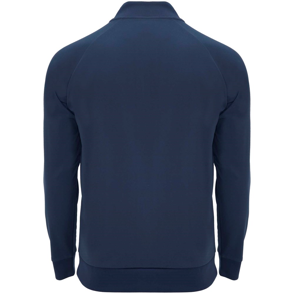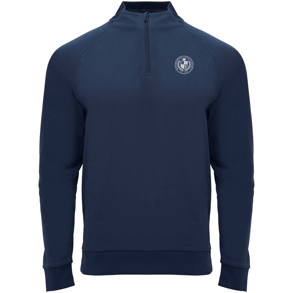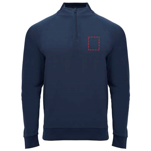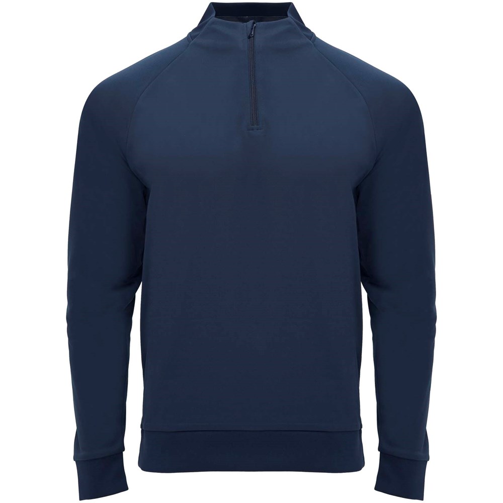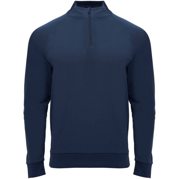 Technische stof. Raglanmouwen. Fleece aan de binnenkant. Kraag met halve rits en bijpassende verstevigde bedekte naden. 1x1 rib in kraag, manchetten en zoom. Verwijderbaar label. Sweatshirt passend bij Neapolis broek.