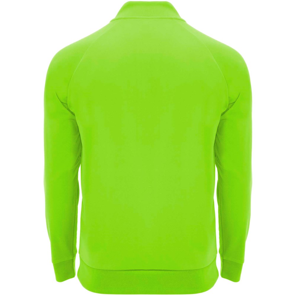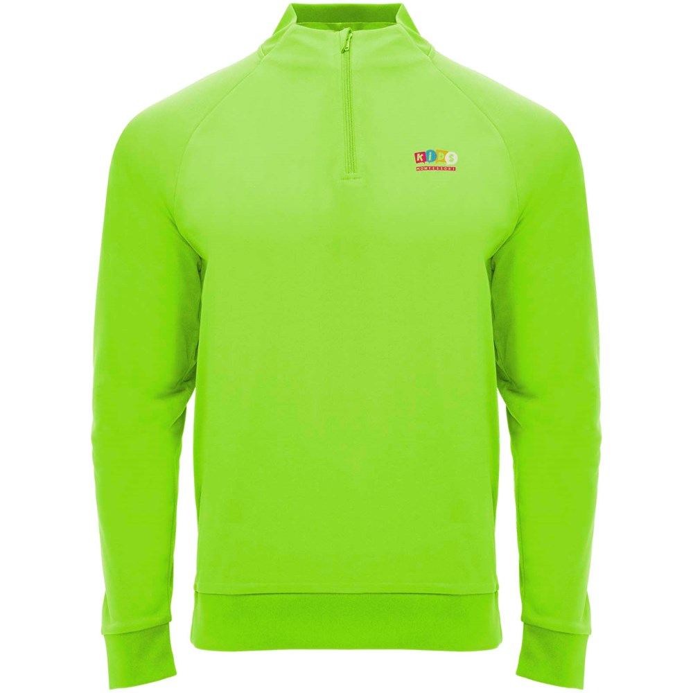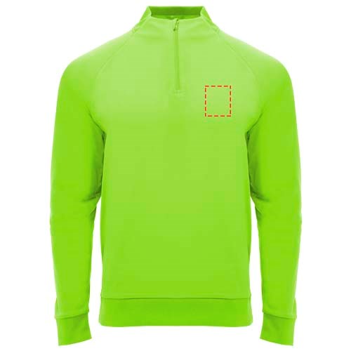 Technische stof. Raglanmouwen. Fleece aan de binnenkant. Kraag met halve rits en bijpassende verstevigde bedekte naden. 1x1 rib in kraag, manchetten en zoom. Verwijderbaar label. Sweatshirt passend bij Neapolis broek.
