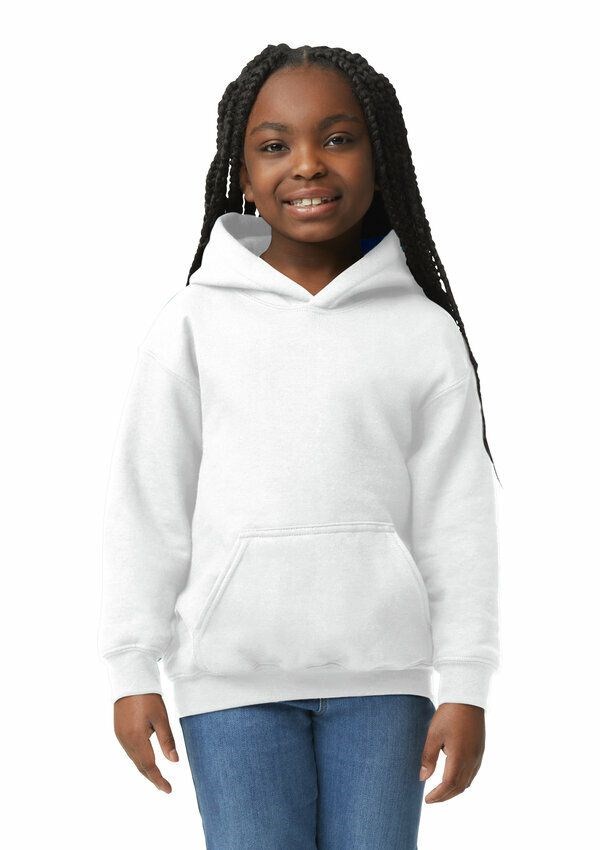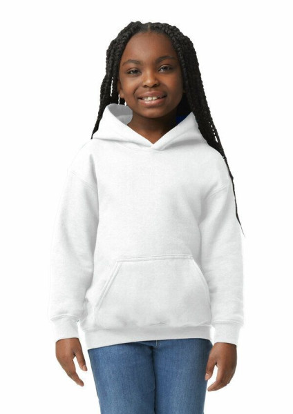 Gildan Heavy Blend Sweater met capuchon met buidelzak voor kinderen in de maten 104 t/m 176. Een populaire hoodie dankzij de uitstekende prijs-kwaliteitverhouding. Het verwerkte katoen in de sweater is van gecertificeerd U.S. Cotton. Het voldoet aan de CPSIA-vereisten.