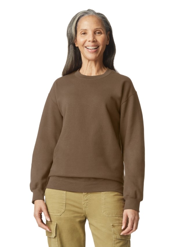 Gildan Softstyle Midweight unisex sweater met ronde hals van zachte ringgesponnen katoenmix. De Softstyle Midweight sweater heeft een comfortabele, geborstelde, gedeeltelijk gerecyclede binnenkant en een buitenkant van 100% ringgesponnen katoen, ideaal voor DTG-printen.