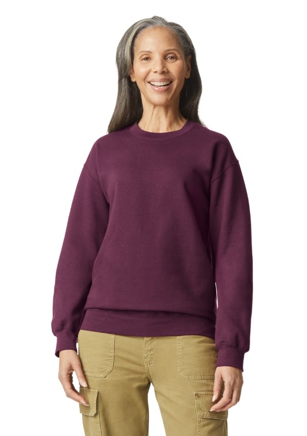 Gildan Softstyle Midweight unisex sweater met ronde hals van zachte ringgesponnen katoenmix. De Softstyle Midweight sweater heeft een comfortabele, geborstelde, gedeeltelijk gerecyclede binnenkant en een buitenkant van 100% ringgesponnen katoen, ideaal voor DTG-printen.