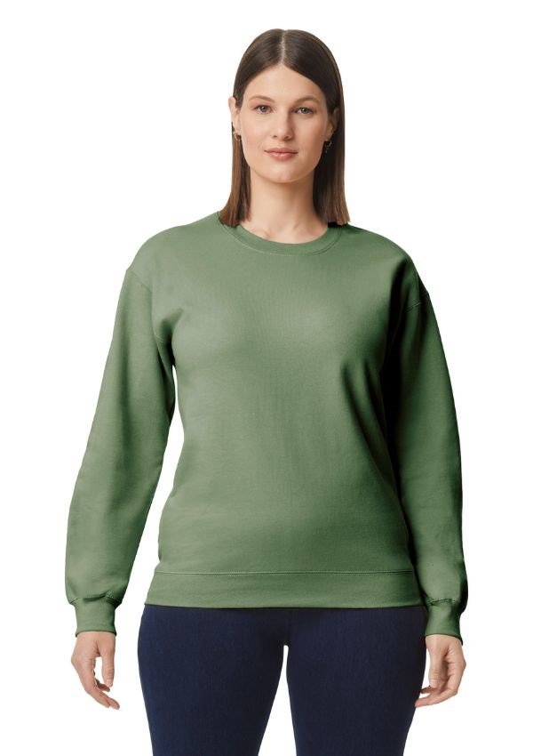 Gildan Softstyle Midweight unisex sweater met ronde hals van zachte ringgesponnen katoenmix. De Softstyle Midweight sweater heeft een comfortabele, geborstelde, gedeeltelijk gerecyclede binnenkant en een buitenkant van 100% ringgesponnen katoen, ideaal voor DTG-printen.