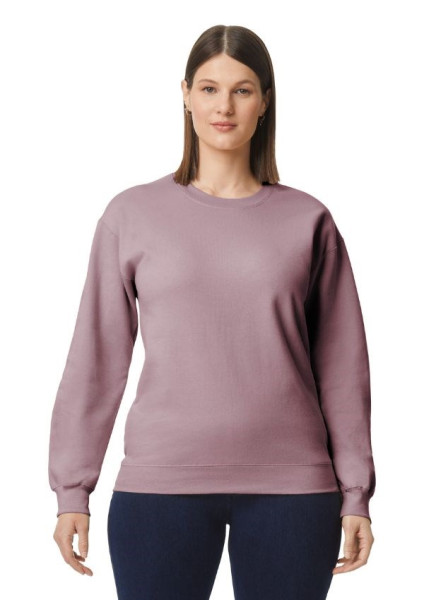Gildan Softstyle Midweight unisex sweater met ronde hals van zachte ringgesponnen katoenmix. De Softstyle Midweight sweater heeft een comfortabele, geborstelde, gedeeltelijk gerecyclede binnenkant en een buitenkant van 100% ringgesponnen katoen, ideaal voor DTG-printen.