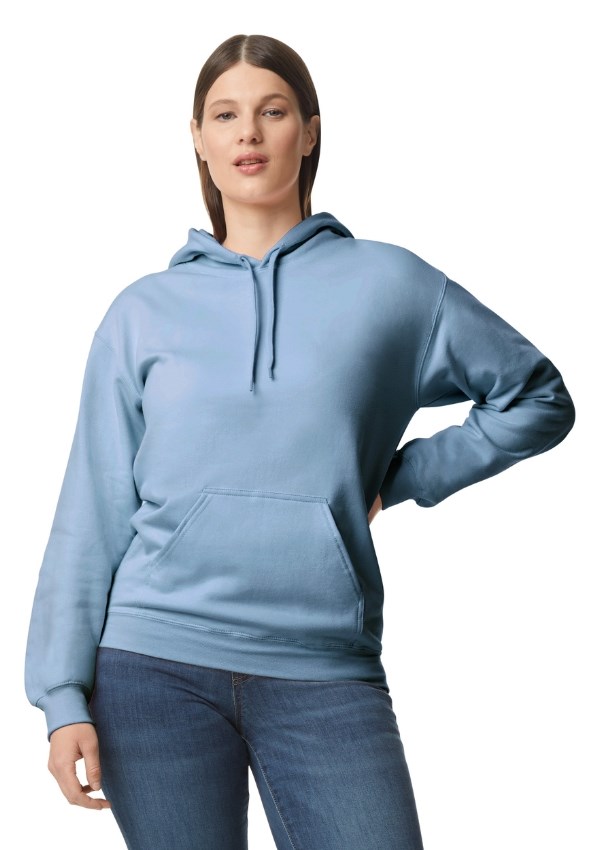 Gildan Softstyle Midweight Sweater met capuchon en buidelzak. Gemaakt van een zachte ringgesponnen katoenmix. De hoodie heeft een geborstelde binnenkant met een 100% katoenen buitenkant, ideaal voor DTG-printen.