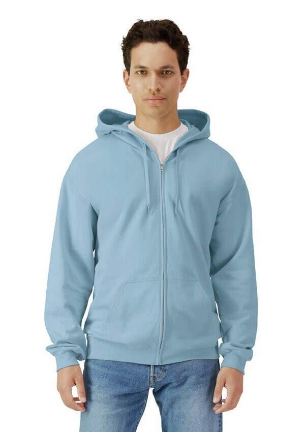 Gildan Softstyle Midweight Unisex Zip Sweater met capuchon, buidelzak en metalen rits. Met een geborstelde binnenkant met een 100% katoenen buitenkant, ideaal voor DTG-printen. Ook verkrijgbaar in een ronde hals en hoodie uitvoering.