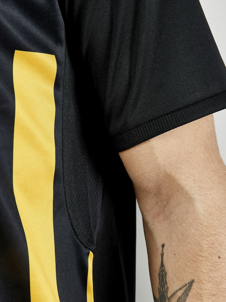 Progress 2.0 Stripe Jersey is an advanced match jersey made of stretchy and functional fabric offering superior moisture transport for maximum performance. Comes with vertical stripe design at front, solid back and a solid horizontal yoke across the chest for optimal impact of crest and/or logos. In addition, mesh panels at the armpits provide efficient body-temperature management while great elasticity ensure comfortable fit and optimal freedom of movement.