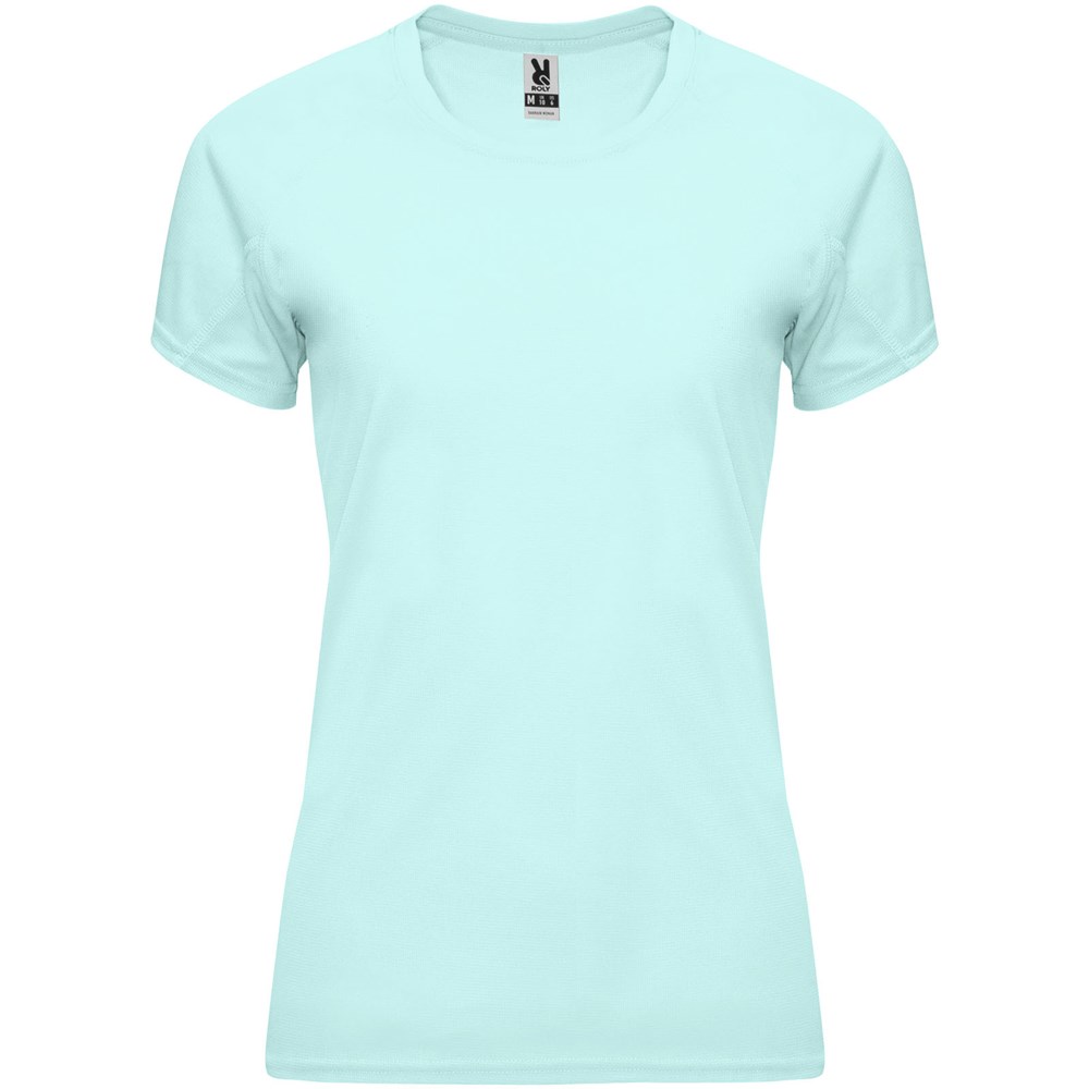 Technisch raglanshirt met korte mouwen voor dames. Ronde hals met bijpassende bedekte naden. Mouwpanelen. Bijpassende overlock in het armsgat en mouwpaneel. CONTROL-DRY-stof. Verwijderbaar etiket. Technische stof. Uv-beschermingsfactor. Het model is 173 cm en draagt maat S.