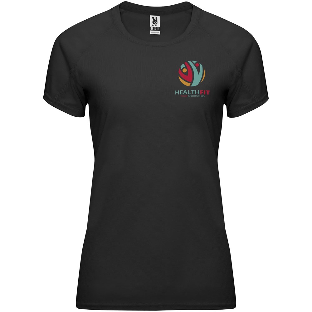 Technisch raglanshirt met korte mouwen voor dames. Ronde hals met bijpassende bedekte naden. Mouwpanelen. Bijpassende overlock in het armsgat en mouwpaneel. CONTROL-DRY-stof. Verwijderbaar etiket. Technische stof. Uv-beschermingsfactor. Het model is 173 cm en draagt maat S.
