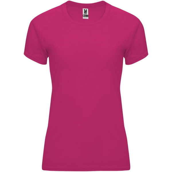 Technisch raglanshirt met korte mouwen voor dames. Ronde hals met bijpassende bedekte naden. Mouwpanelen. Bijpassende overlock in het armsgat en mouwpaneel. CONTROL-DRY-stof. Verwijderbaar etiket. Technische stof. Uv-beschermingsfactor. Het model is 173 cm en draagt maat S.