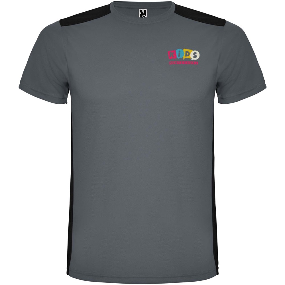 Gemakkelijk drogende, technische en ademende stof. Ronde hals. Combinatie van twee polyesterstoffen op de rug en schouders. Birdseye-stof aan de voorkant en ademende 3D-meshstof aan de achterkant. Stof voorbereid voor vochtopname. Decoratieve zigzagsteek aan de zijkanten en schouders. Rugpatroon is iets langer. Verwijderbaar label.