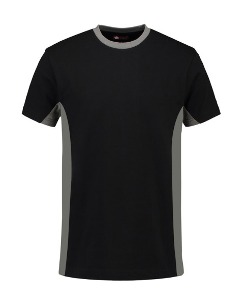 Lemon & Soda workwear unisex T-shirt met korte mouwen en ronde hals. Contrast kleuren bij de halsopening en zijkanten van het T-shirt. Behandeld met een bio-wassing voor extra glad oppervlakte.