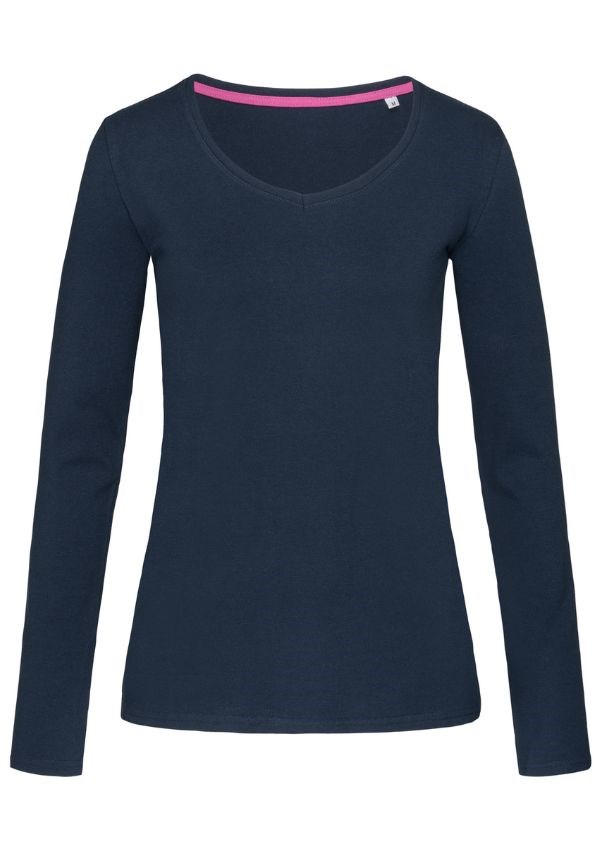 Stedman Stretch-T V-neck met lange mouwen voor vrouwen. Comfortabel door de elastaan en gekamde katoen kwaliteit. Het longsleeve shirt heeft een wijdere V-neck, nekband, een klein maat label in de nek en zijnaden.