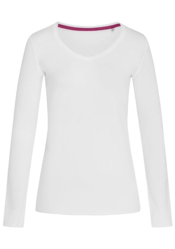 Stedman Stretch-T V-neck met lange mouwen voor vrouwen. Comfortabel door de elastaan en gekamde katoen kwaliteit. Het longsleeve shirt heeft een wijdere V-neck, nekband, een klein maat label in de nek en zijnaden.