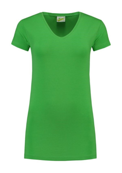 Lemon & Soda dames V-hals T-shirt met korte mouwen in meerdere kleuren. Een comfortabel T-shirt dankzij de langere lengte en het aansluitende model van de single jersey. De kleuren zijn ideaal om te bedrukken en te borduren en perfect in te zetten als werkkleding.
