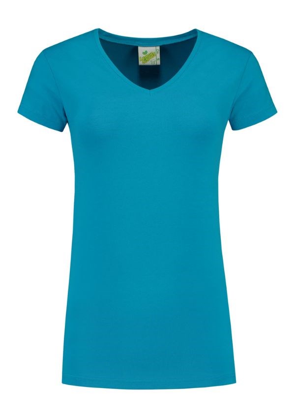Lemon & Soda dames V-hals T-shirt met korte mouwen in meerdere kleuren. Een comfortabel T-shirt dankzij de langere lengte en het aansluitende model van de single jersey. De kleuren zijn ideaal om te bedrukken en te borduren en perfect in te zetten als werkkleding.