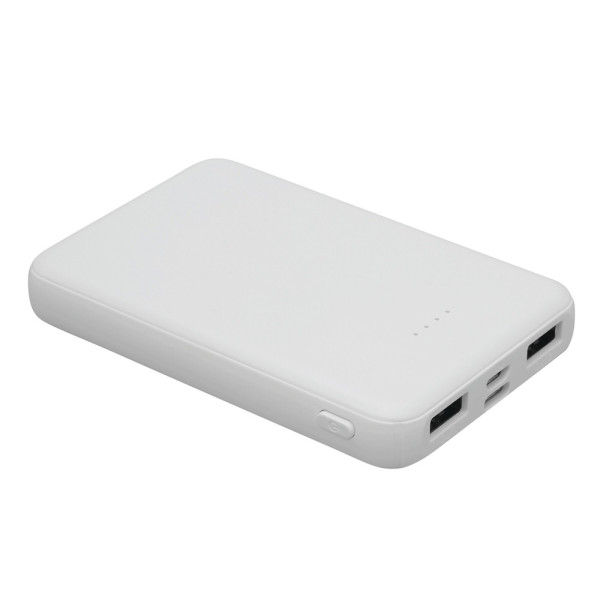Powerbank POCKET ENERGY: geschikt voor smartphones en USB-gevoede apparaten, twee USB type A poorten (uitgang), één USB type C poort (uitgang en ingang) en één micro USB poort (ingang), capaciteit: 5.000 mAh, incl. USB-kabel met USB type C stekker (lengte: ca. 30 cm), LED laadniveau-indicator, aan/uit schakelaar, krachtige lithium-ion batterij, dubbellaags beveiligingscircuit, ingangsvermogen: 5V/2A, uitgangsvermogen: 5V/2A, voedingsindicatielampje.
