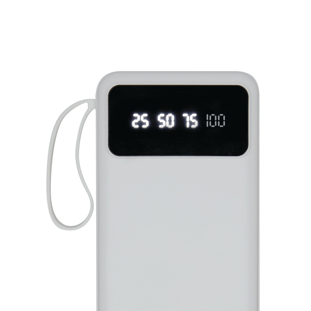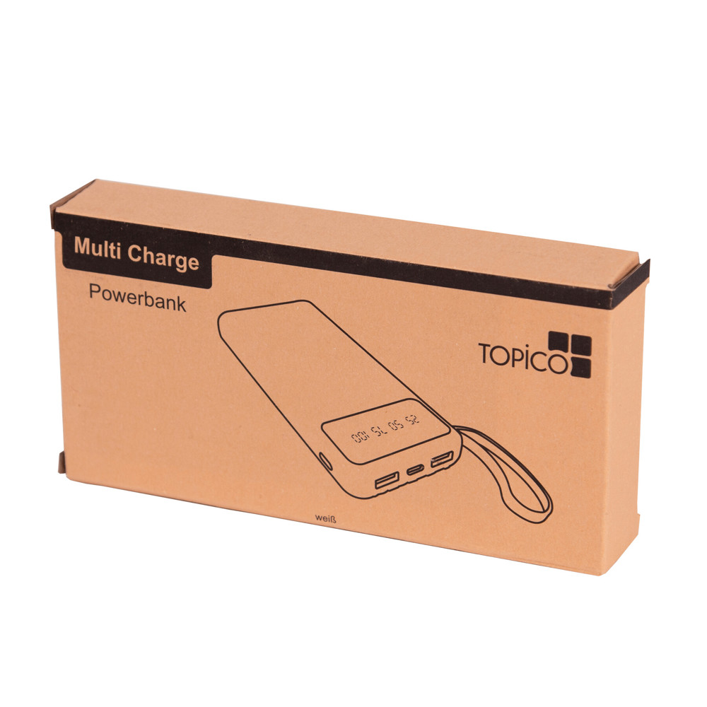 Powerbank MULTI CHARGE: geschikt voor smartphones en USB-apparaten, 2 USB type A en 1 type C uitgangen, capaciteit: 10.000 mAh, 4 geïntegreerde oplaadkabels aan de achterkant (type C, micro-USB, Lightning® en USB type A), laadniveau-indicator (25 / 50 / 75 / 100 %), krachtige batterij, ingangsvermogen: 5V/2A, uitgangsvermogen: 5V/2A (max.), met uittrekbare smartphonehouder, met aan/uit-schakelaar